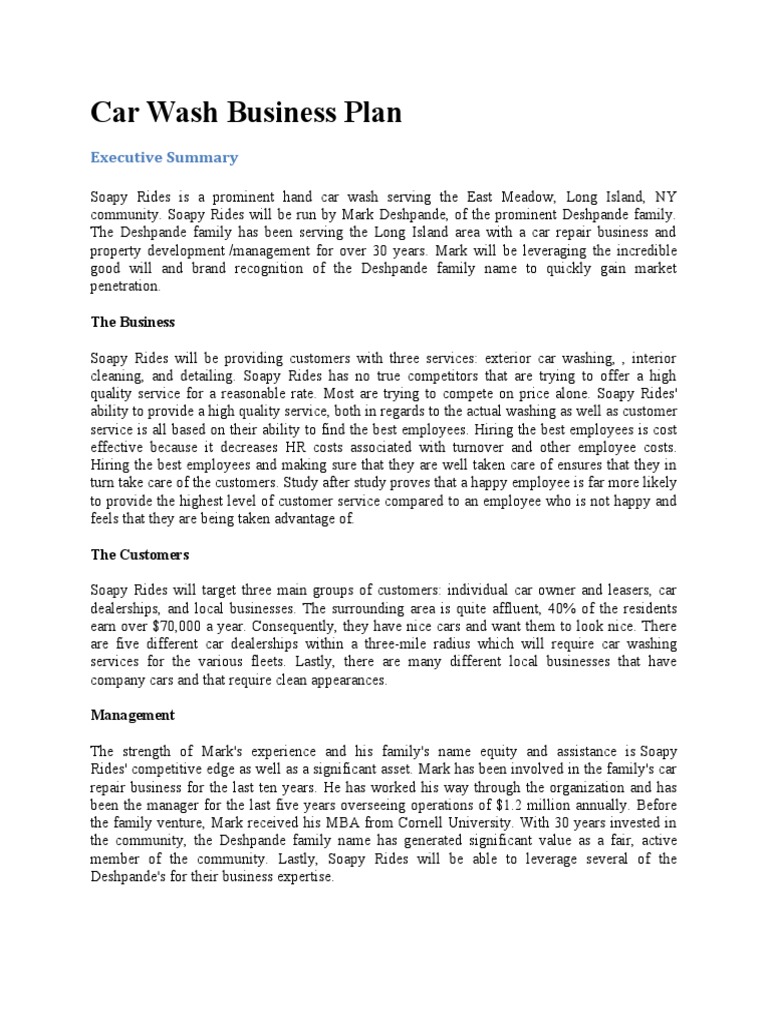Car Wash Proposal Template Startup Business Plan Template Executive Summary Template Business Plan Template Pdf
