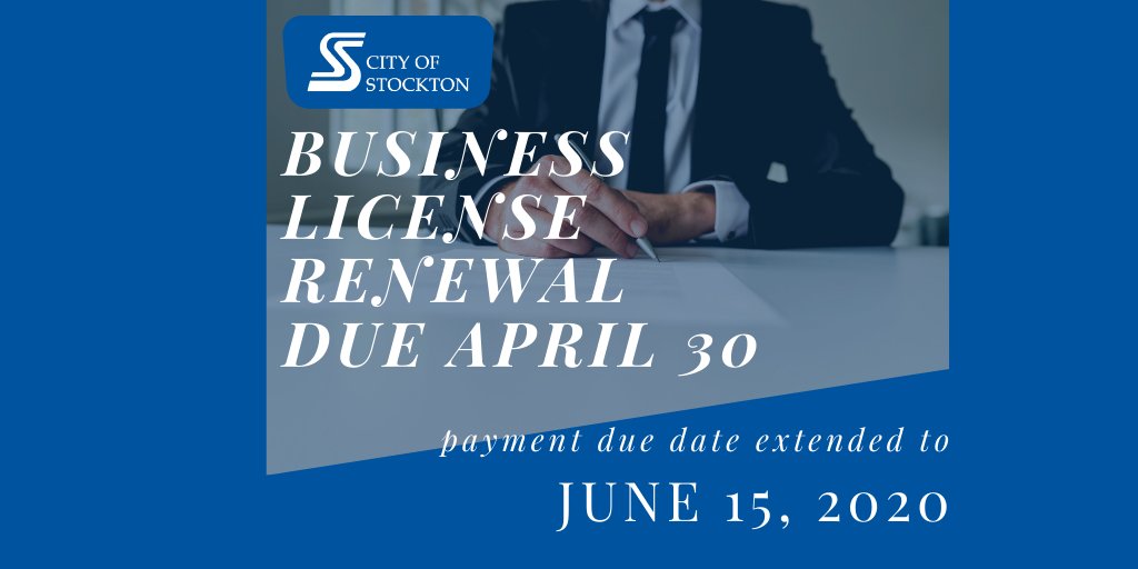 City Of Stockton Ca On Twitter Business License Tax Renewal For Renewals Expiring On 4 30 20 Filing And Payment Deadline Extended To 6 15 20 Visit Https T Co Ladttwwelr For Local Announcements Related To Covid 19 Including Contact